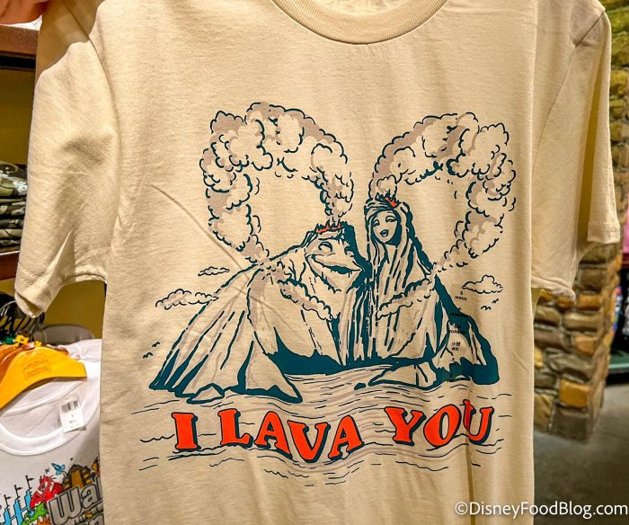 There was also a sweet new t-shirt for adults, with the lovable volcanoes from the Pixar short Lava. The “I Lava You” T-Shirt is $24.99.