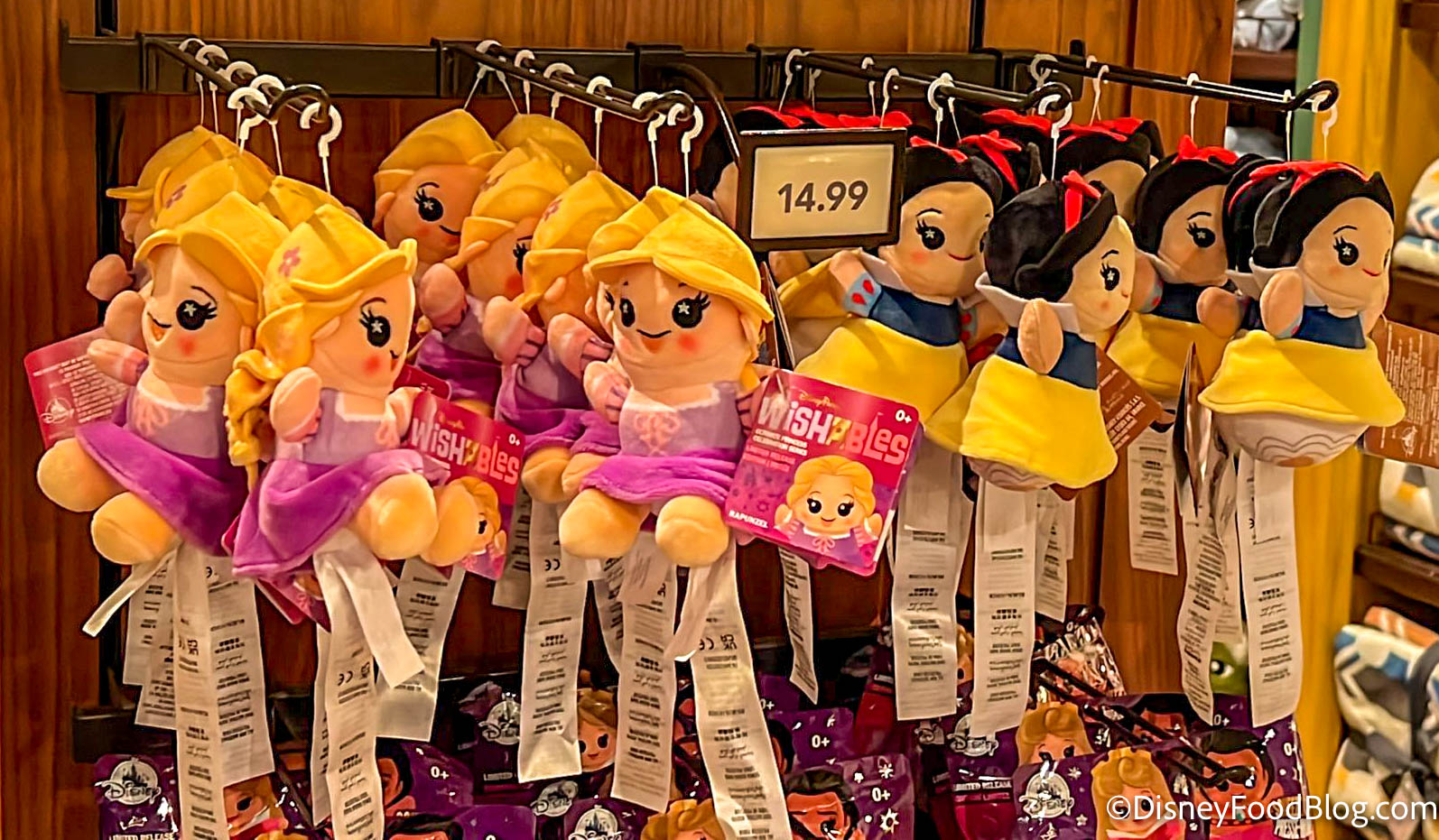 We spotted the arrival of Snow White Wishables, right next to the new Rapunzel Wishables. They go for $14.99.