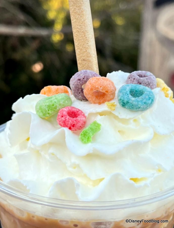 The American Adventure Joffrey’s has the Rainbow Dreams Cold Brew, a Cold Brew topped with Whipped Cream and Colorful Marshmallow Crunch, which is $6.39. You can also get the drink with alcohol for $13.99.
