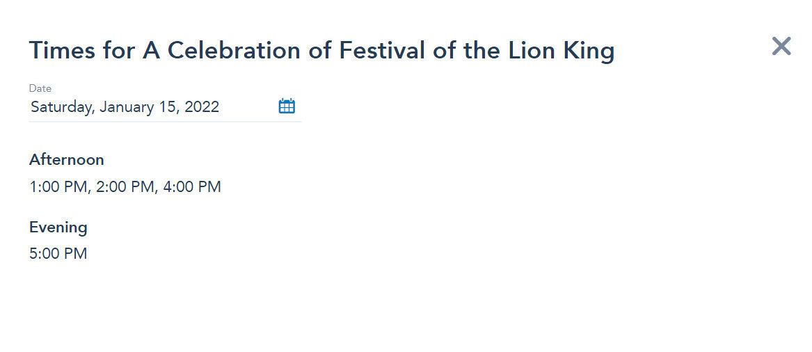 When we looked at the Disney World website for showtimes of A Celebration of The Festival of the Lion King at Disney’s Animal Kingdom, we noticed that today’s performance schedule had gone down to four scheduled performances.