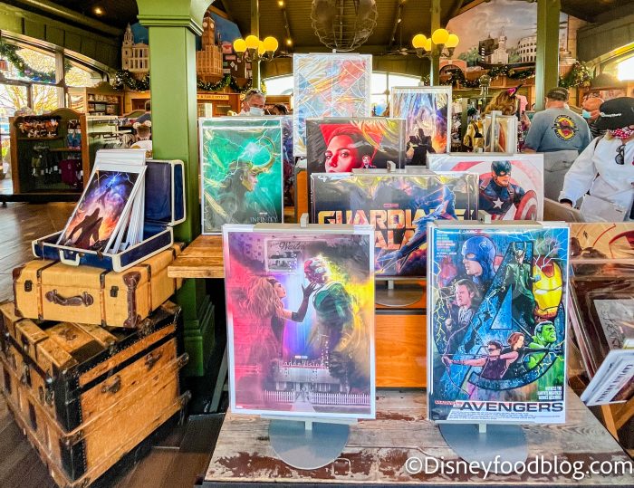 Starting out in World Showcase, Disney Traders has a new ACME Archives display for the Festival of the Arts. Most of the artwork available in here is Marvel-themed, with some of your favorite superheroes represented in painting or drawing form.