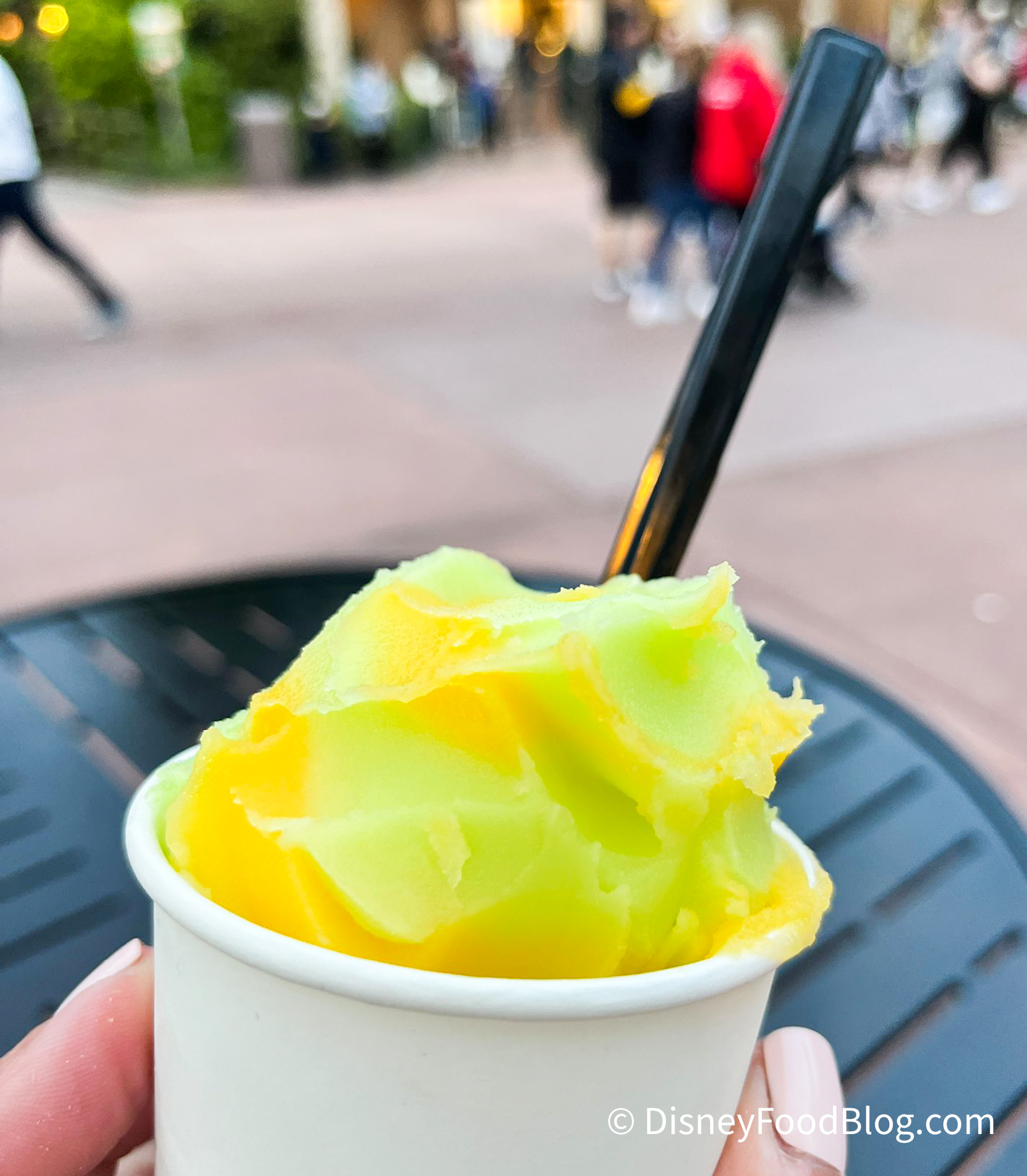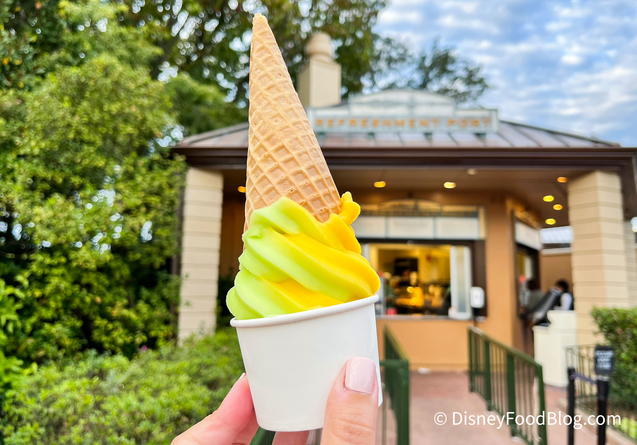 Refreshment Port is one of the few places outside of Magic Kingdom where you can enjoy Dole Whip. Today, we spotted Mango Lime Swirl on the menu and we knew we had to give it a try!