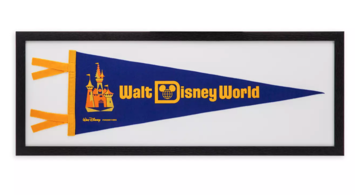 But that’s not all! What else is in the category of “ridiculously expensive anniversary souvenirs?” Well, we’ve got some new vintage Walt Disney World pennants online! There are two designs and they are (you may want to sit down) $199 each.