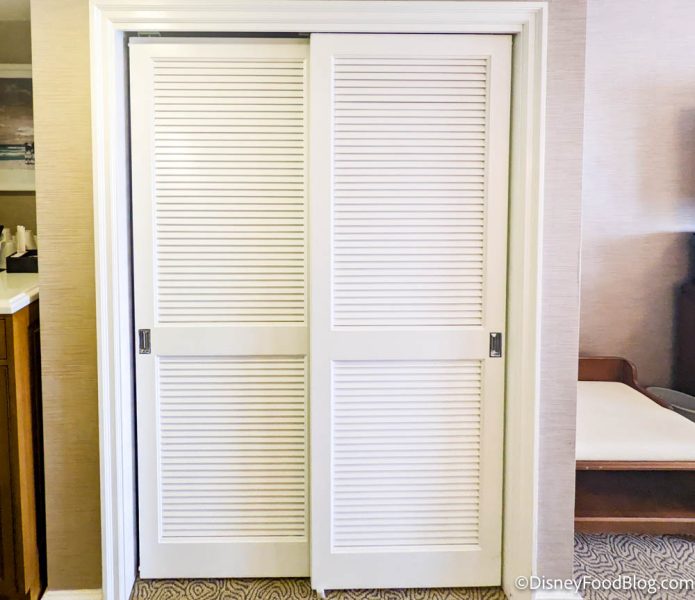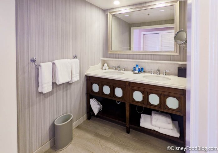 The door for this area has a long mirror on the back (the vanity side) so you can check out your best park outfits before you leave for the day.