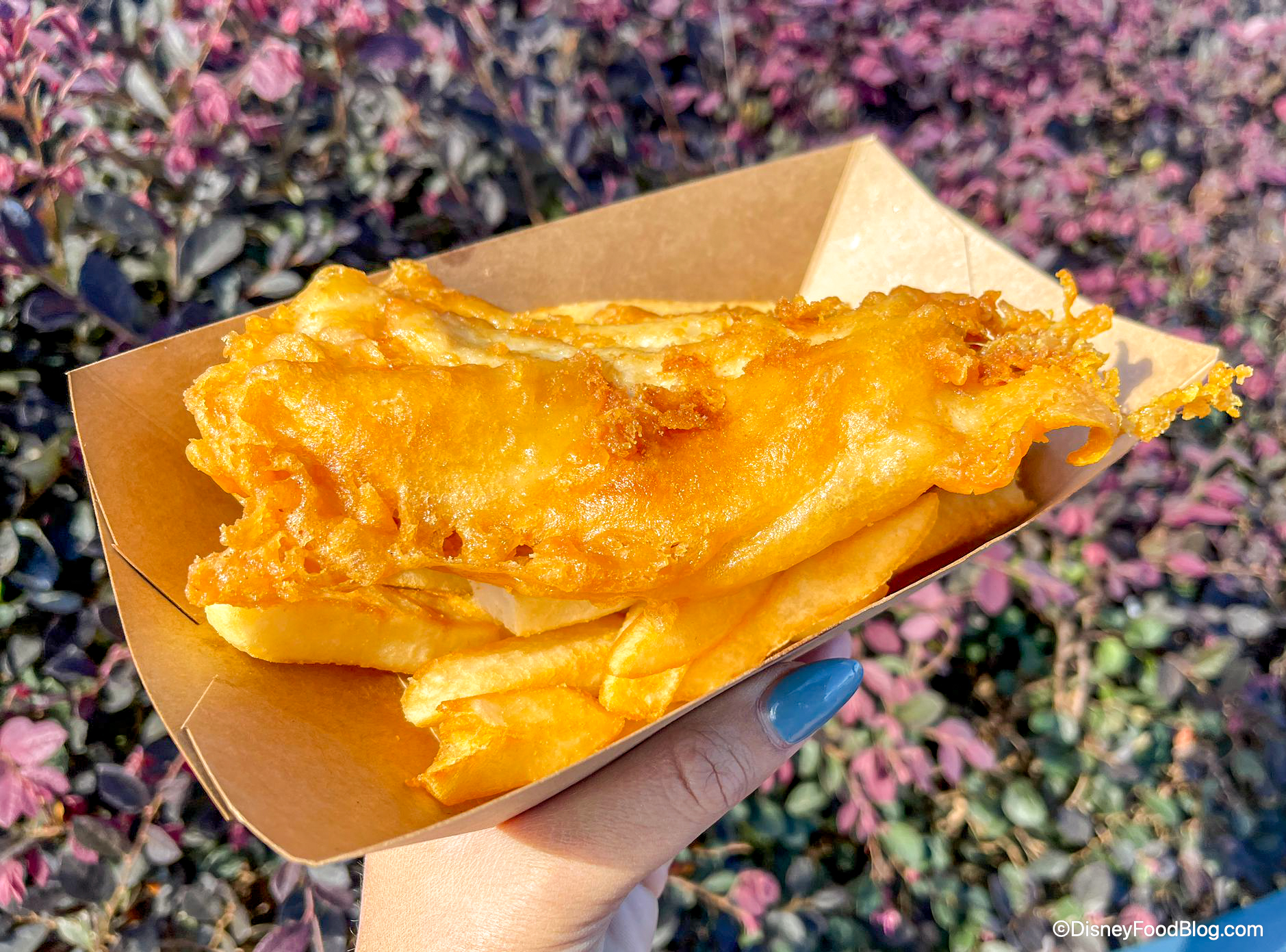 Back at the UK pavilion, the Yorkshire County Fish Shop is serving up Fish and Chips at its quick-service location. You won’t need reservations here, and there’s a large outdoor seating area right on the Lagoon.