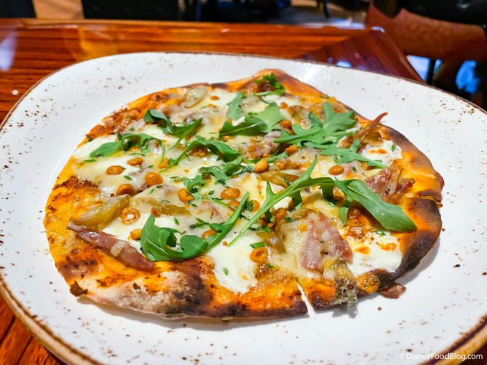 We thought that the flatbread balanced the sweet fig flavor perfectly with the spicy crunchy chickpeas. Although it sounds pretty different, we still think this will appeal to many people — give it a try! We wish this appetizer had just a little more duck, but if you don’t mind a little sweet heat, you might enjoy the Duck Confit and Honey Raisin Flatbread.