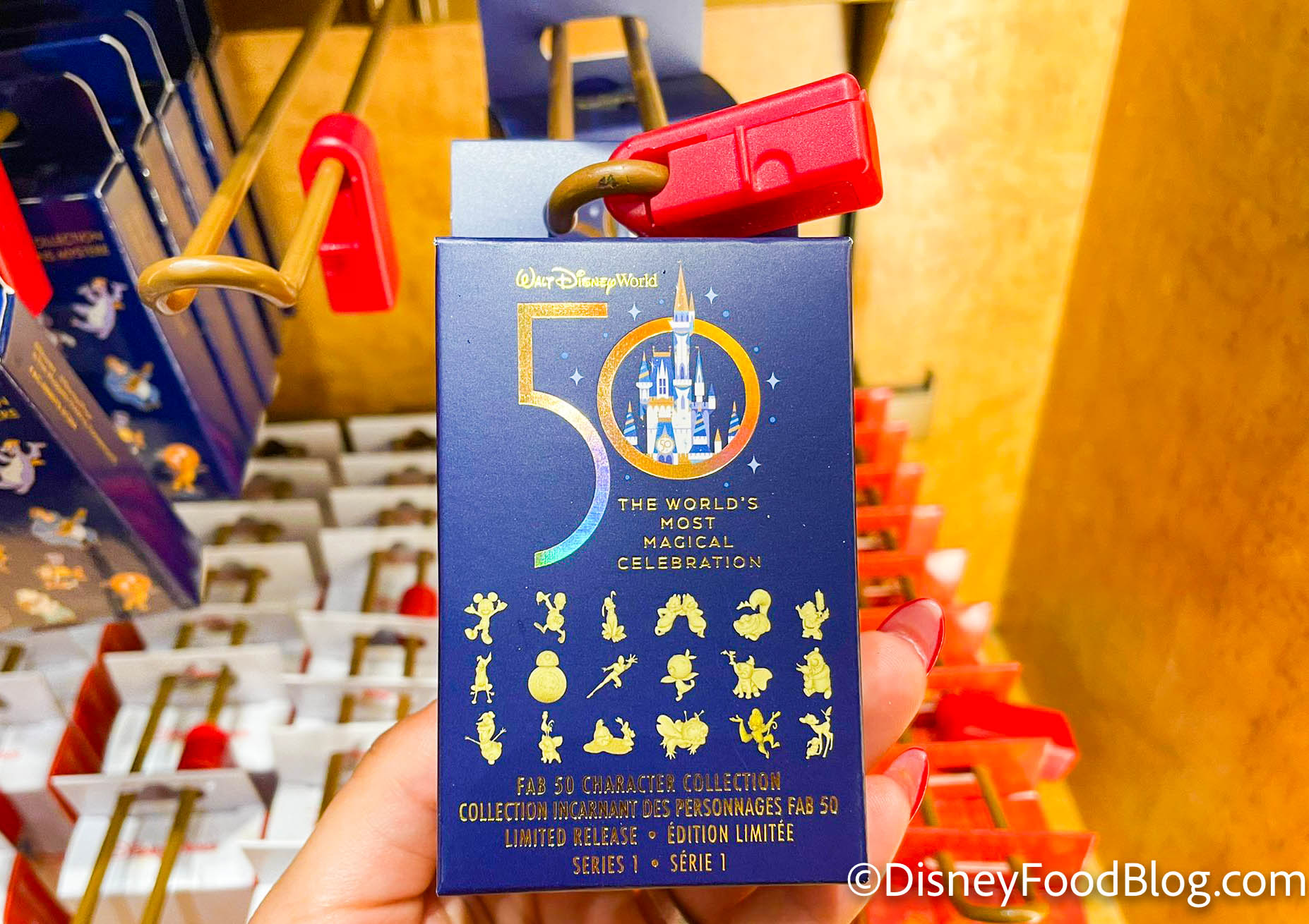 Across the street at The Dark Room, there were a couple new items to report as well. First up is this new 50th Anniversary mystery pin set. It features pins that look like the golden Disney Fab 50 statues around the parks, and you can collect them for $21.99 each.
