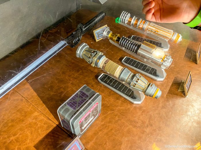 After some time waiting, we were called back and were finally able to see it. According to a Cast Member we spoke to, only 1,000 of these lightsabers were sent to Disney World, 1,000 were sent to Disneyland, and 1,000 were sent to be sold on shopDisney. Only 3,000 were made in total — a.k.a. very limited! And when we asked if we could hold that lightsaber hilt to take pictures of it or just have the Cast Member hold it for us, they told us that wasn’t allowed!