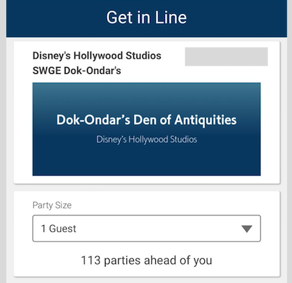 Upon further inspection, we saw that it’s the Jedi Temple Guard Hilt! This lightsaber is SPECIAL. How special you ask? Well, for starters, we couldn’t just walk into Dok-Ondar’s to check it out. In order to even see it, we had to join a virtual waitlist. At the time, there were 113 parties ahead of us!