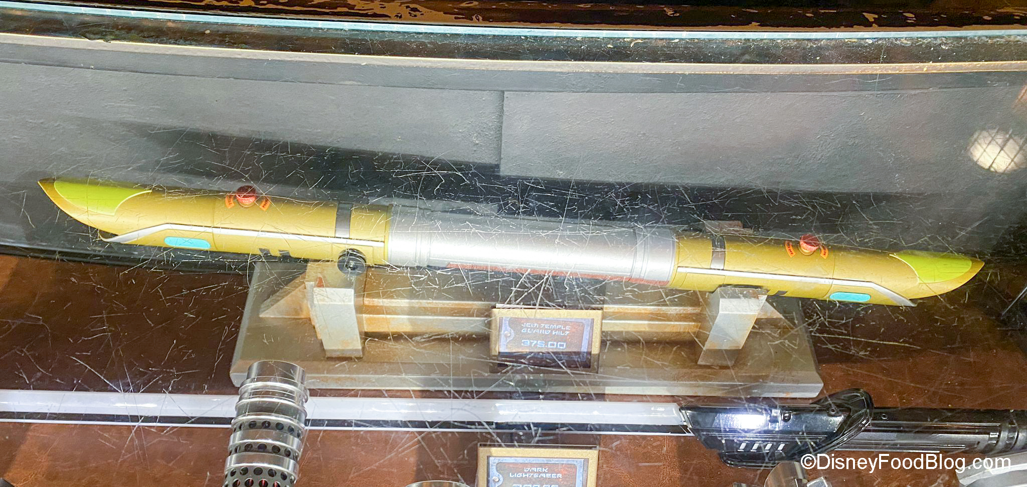 If you’ve been to Galaxy’s Edge, you’ve likely seen the lightsaber hilts in the display case at Dok-Ondar’s Den of Antiquities. Today, a special and expensive lightsaber hilt caught our eye!