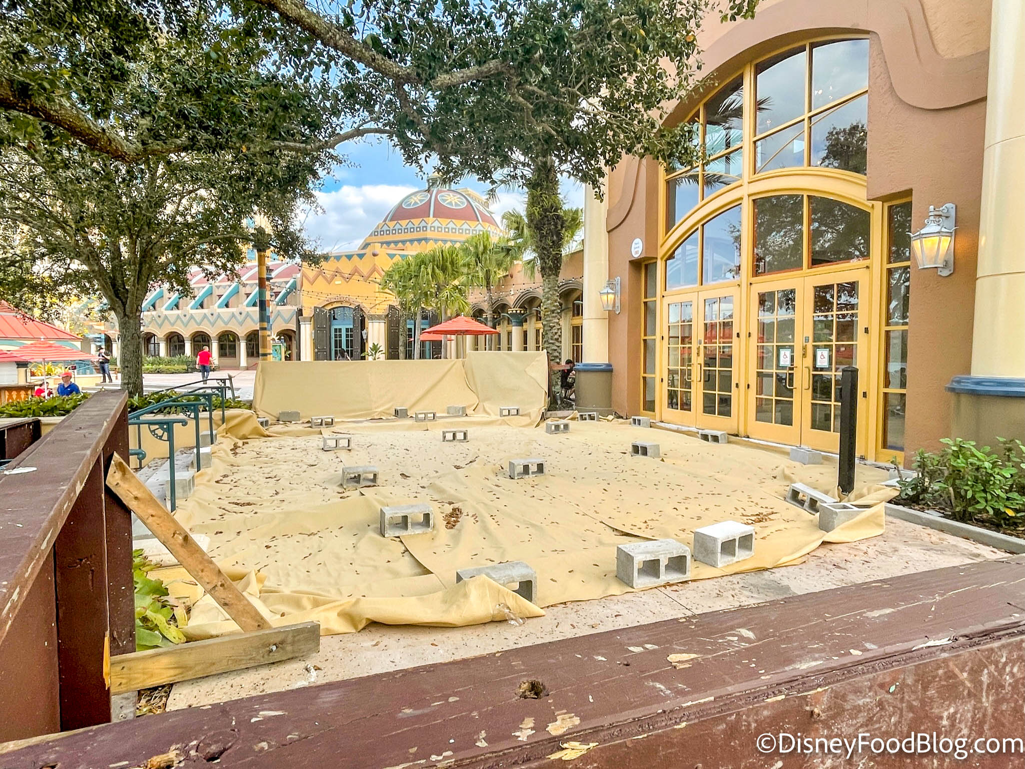 At Coronado Springs, construction walls were put up and a tarp was placed in front of an entrance area.