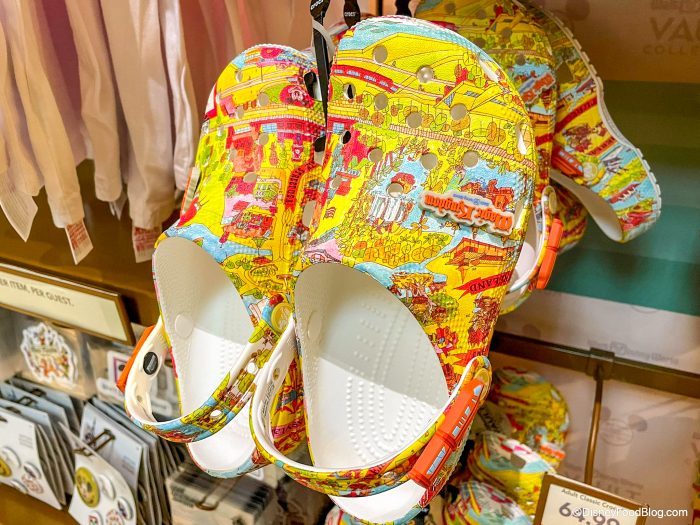 We know many of y’all love wearing Crocs, and we know you love it when we find new pairs of Crocs at Disney World like those awesome Vintage Park Map Crocs or those fun fuzzy holiday Crocs or the blue 50th Anniversary Crocs. Well, we found a pair of NEW Disney crocs today that just might win over those who are skeptical about these comfy park shoes.