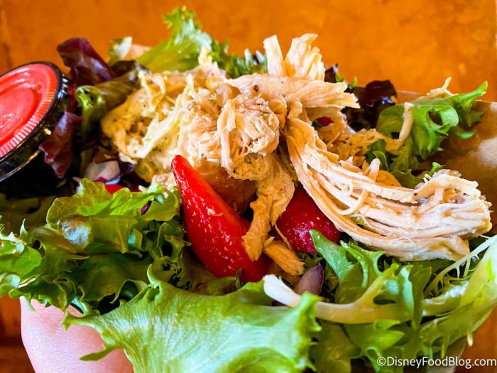 That being said, this is still just a salad. We don’t think it’s really worth skipping the more special or iconic foods in this park (like Casey’s Corner corn dog nuggets with plastic cheese and Cinderella Castle views) if you only have a limited time to snack, but if you’re craving a fresh and light meal, it’s a solid choice.