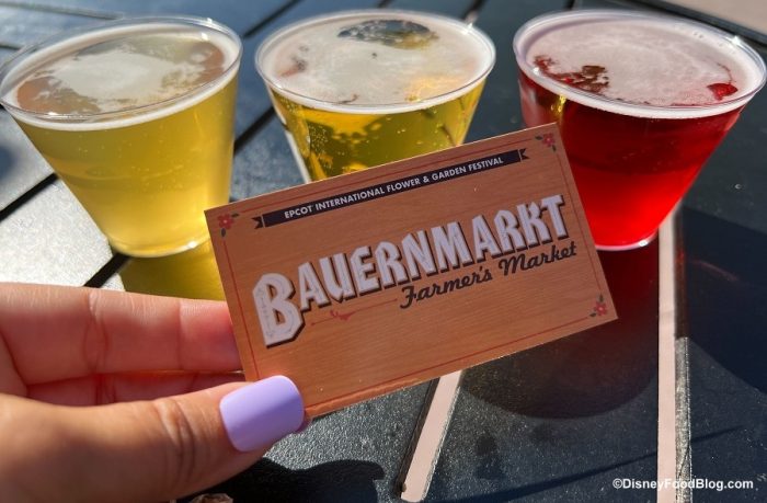 Welcome to the 2022 EPCOT Flower and Garden Festival! The Festival is officially underway and we’ve been in the park all day, checking out all the colorful topiaries, merchandise, and (of course) food booths! Now it’s time for a visit to a classic booth in the Germany pavilion. Returning booth Bauernmarkt: Farmer’s Market is an oldie but a goodie, and we’re ready to re-visit our favorite dishes that will take us far beyond the realm of chicken nuggets and fries!