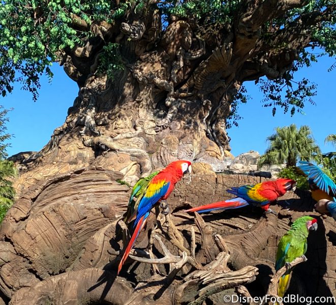 One of our favorite things about Animal Kingdom is being able to get up close and personal with ACTUAL wildlife! Not only do we get epic close-ups with giraffes and zebras on Kilimanjaro Safaris, but we’re obsessed with the macaws by the Tree of Life!