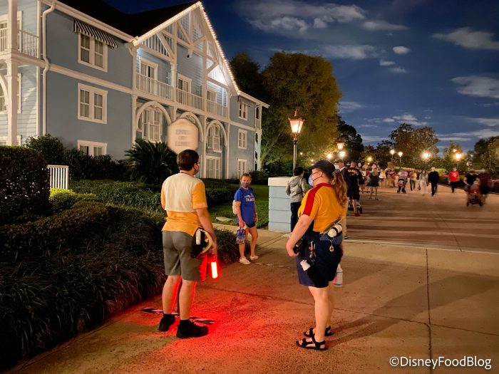 And, when the parks close, there can also be verrrry long lines to get on the Skyliner — especially right after the Harmonious fireworks at EPCOT. The line can stretch all the way back into the walkway to the EPCOT resorts and you might be waiting for a while to get on the Skyliner to get back to your hotel.