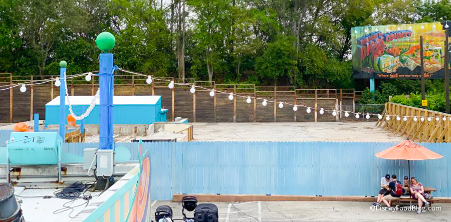 We don’t have anything SUPER new to report when it comes to construction, but we DID take a spin on TriceraTop Spin to get a view of the currently vacant spot where Primeval Whirl has been removed. We can’t WAIT to see if something cool comes to this area.