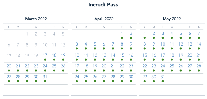 The same goes for guests with Theme Park Tickets, who have no Park Pass availability on March 20th, 21st, 22nd, and 24th, limited availability on March 23rd, 25th, and 26th.