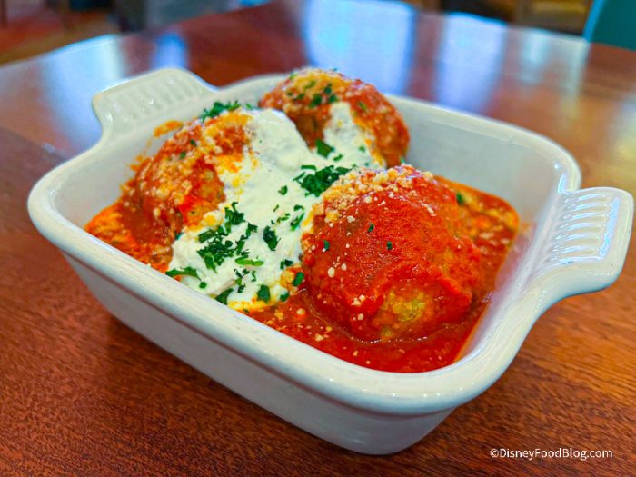 As our appetizer, we chose the Polpettine — Classic Braised Meatball, Whipped Ricotta, and Parmesan Cheese — for $16.