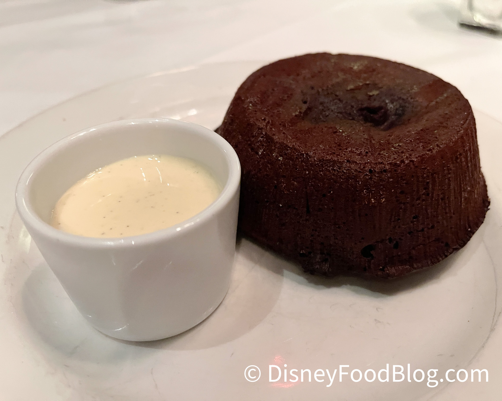 For dessert, we ordered the Molten Chocolate Lava Cake, priced at $12. Quick note here — if you want the Chocolate Lava Cake, the Chocolate Soufflé, or the Apple Tart, you must order it with your dinner, as they are made-to-order!