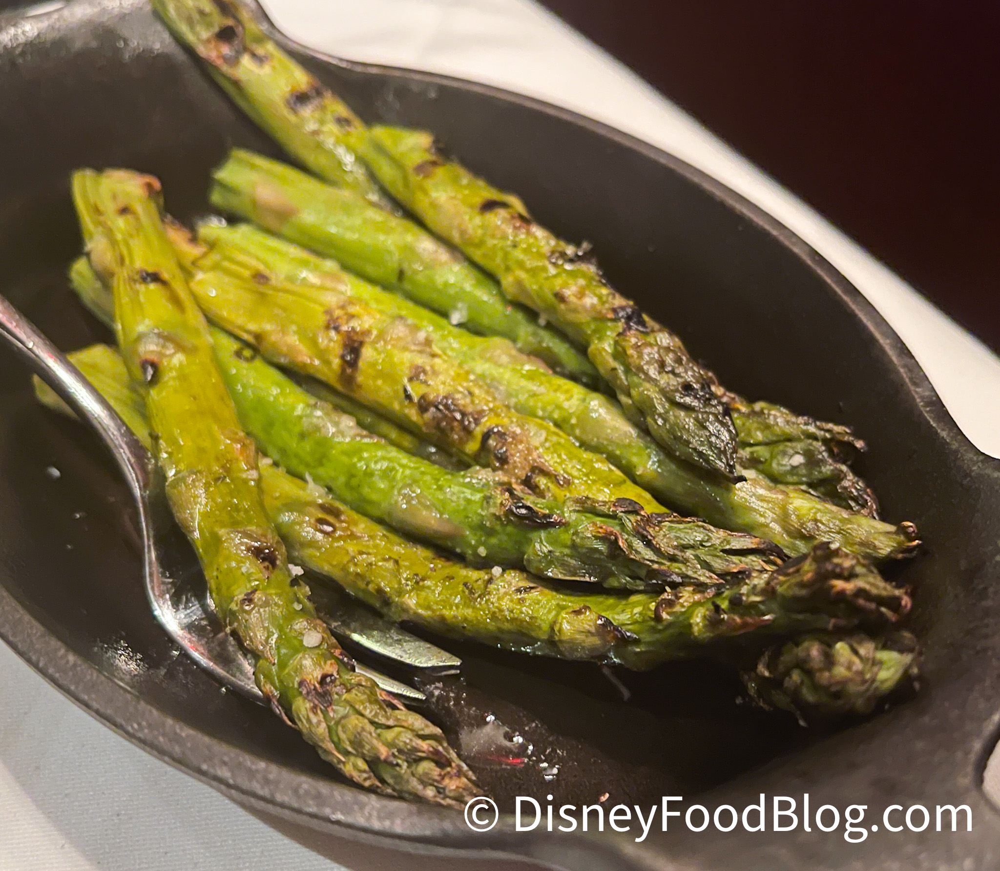 Along with our filet, we ordered two side dishes. The first was the Fresh Jumbo Asparagus Spears for $13. These come either Grilled with Meyer Lemon or Steamed with Hollandaise Sauce — we chose grilled. Just like the steak, there was nothing extra fancy or special about this side dish, but it was tasty! This was another example of excellent execution without any frills. And we have to admit that they were a nice pairing with our filet.
