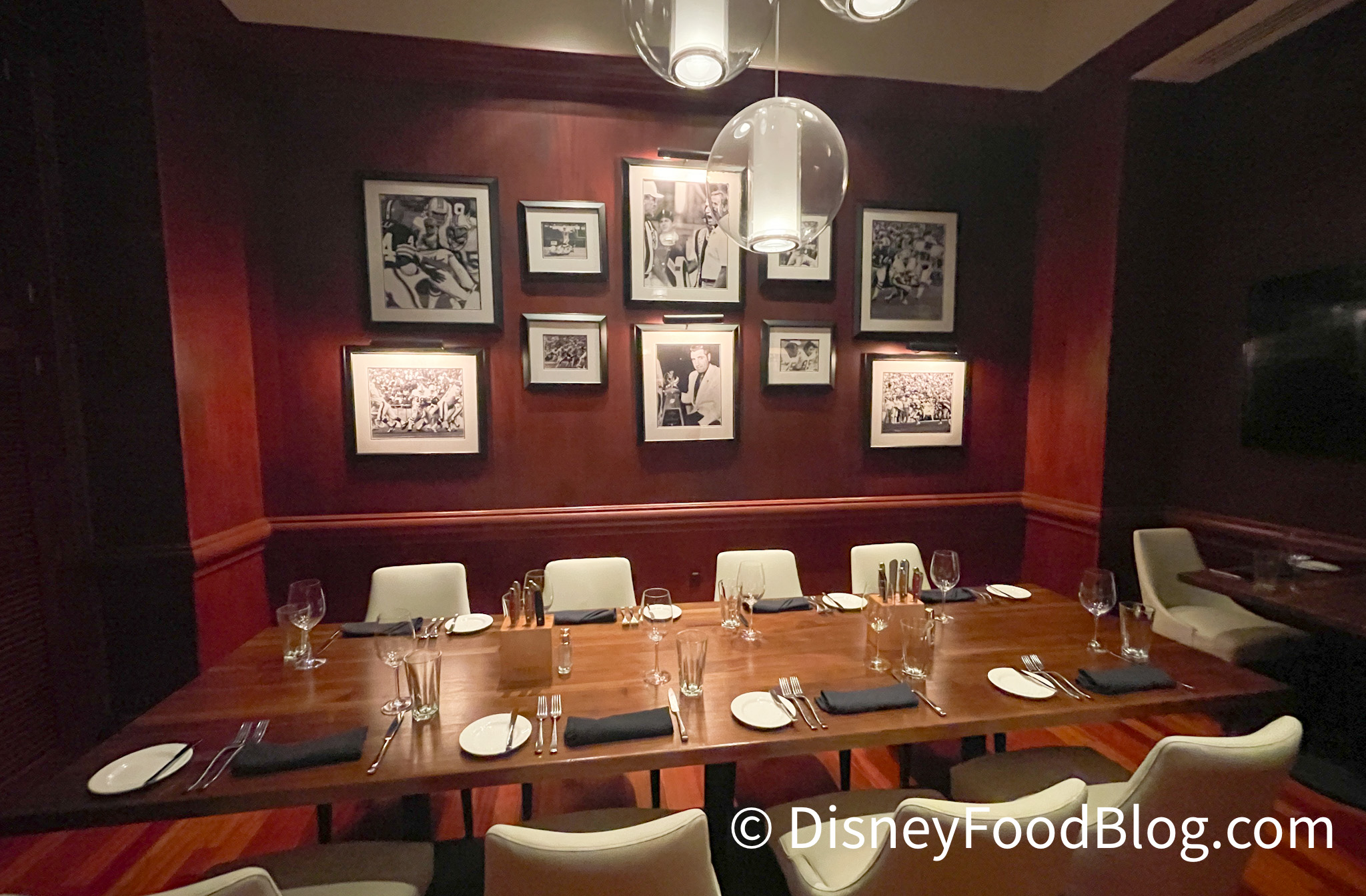 But don’t let the sports theming fool you! Shula’s is one swanky restaurant, complete with dim lighting, dark wood, white table cloths, and all of the other fixings you would expect to see at one of Disney World’s signature dining locations.