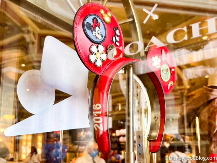 Shanghai Disney Resort is represented with red Mickey ears, which have some of the same decals as the Disney World and Disneyland ears. These, however, also have a Minnie Mouse bow decal and a patch featuring Minnie as well!