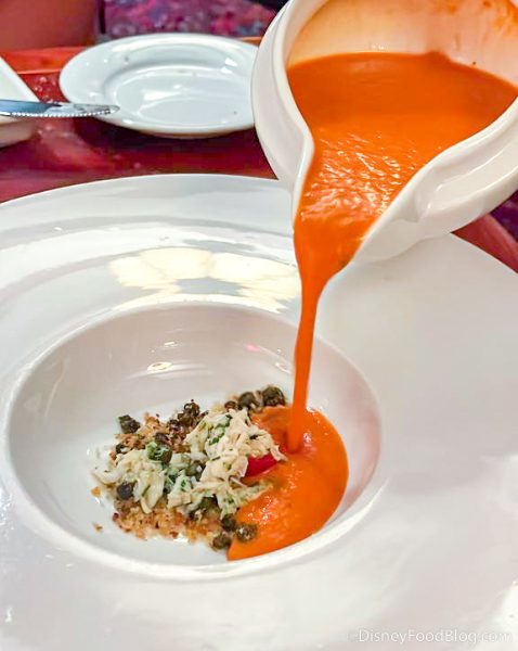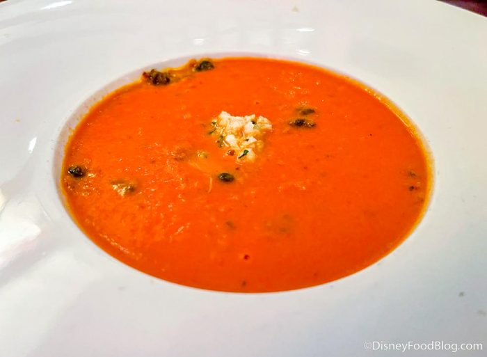 Now, time for some new eats! First up, we got the NEW Roasted Tomato Cream Soup, which has Lump Crab, Caper, and Fried Garlic for $15. This soup was actually poured table-side, which was a fun and fancy touch!