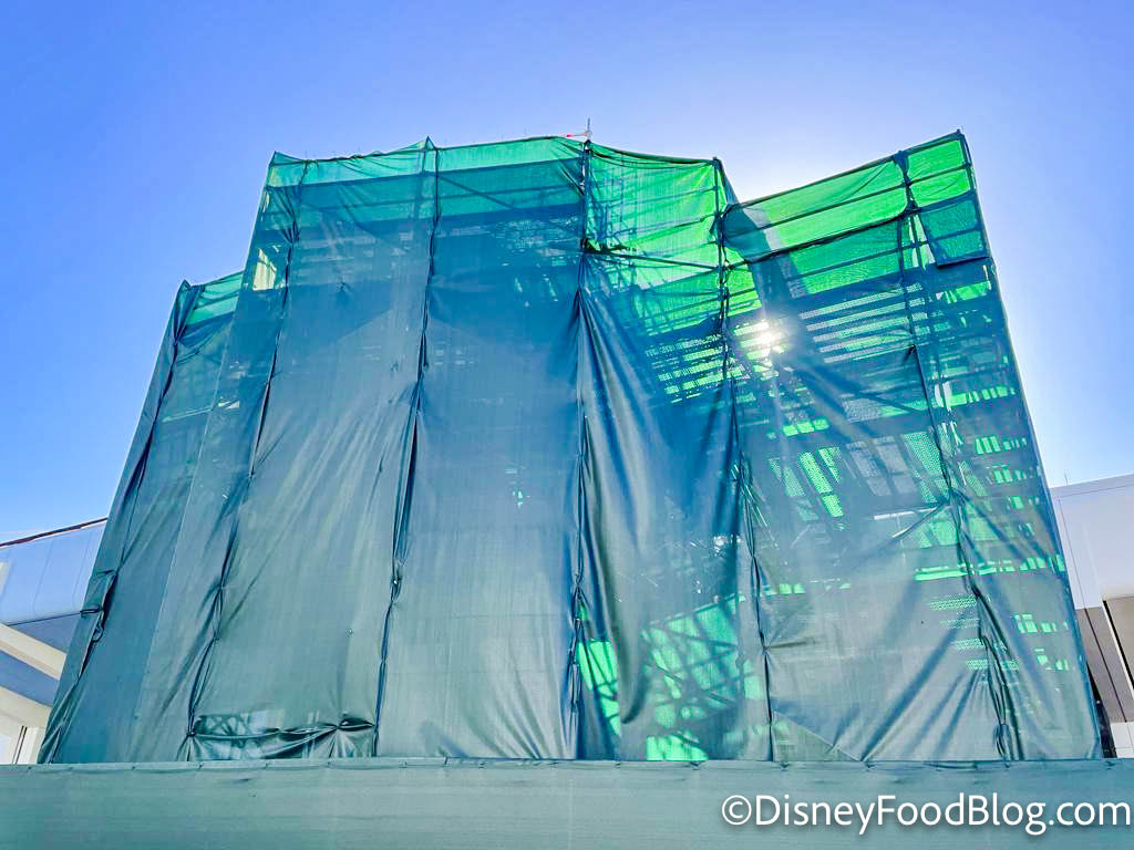 The large structure is visible above the construction wall, and guests walk past it on their way to Creations Shop and Club Cool. We’ll keep watching to see if we get any hints about what’s going on here.