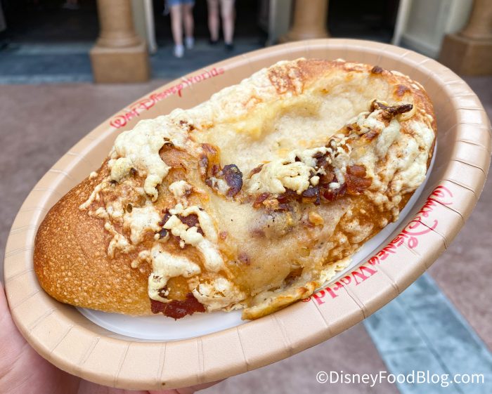 Thankfully, Cast Members heard our cries for more bacon, and the next time we visited there was TONS of bacon! And y’all, it’s bacon, cheese, and bread — so naturally, it’s delicious. Unfortunately, it’s not on the menu at the moment, but like we said, it has gone through a few transitions, so we look for it to reappear!