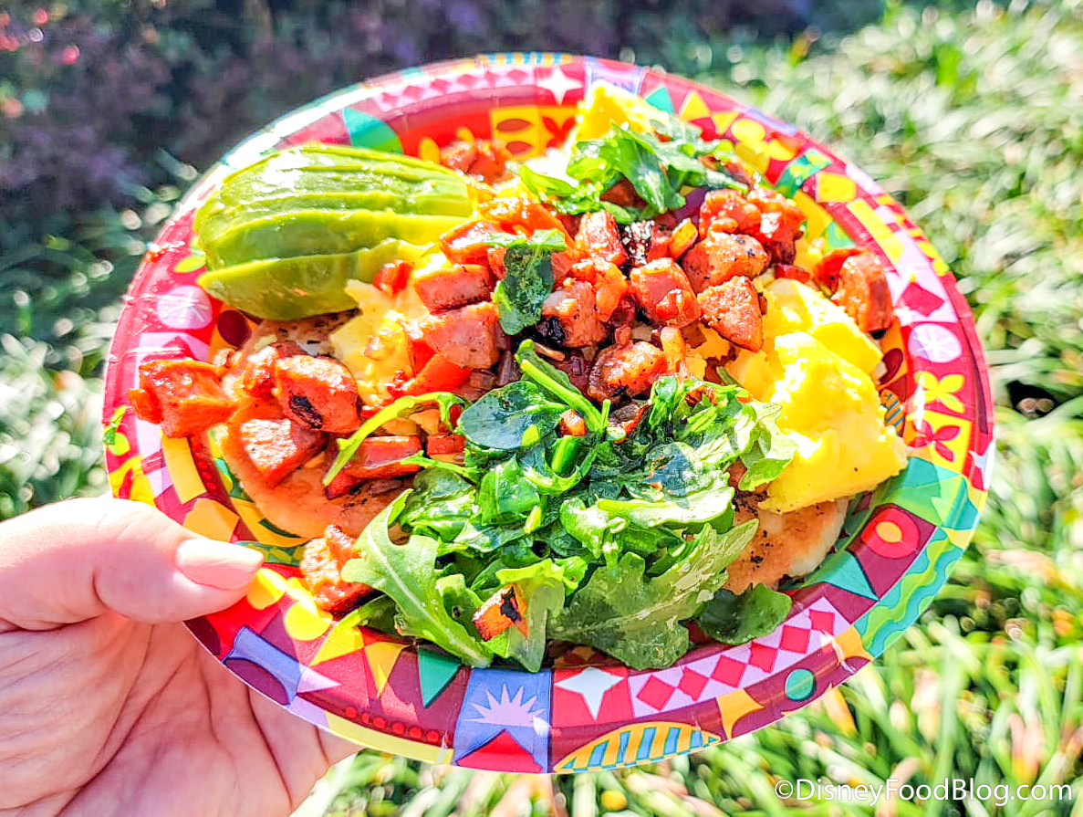 The new savory breakfast dish you’ll want to try was inspired by the women of Encanto, and you can currently find it at two different locations — the World Premiere Food Court at Disney’s All-Star Movies Resort hotel and Landscape of Flavors at Disney’s Art of Animation Resort hotel.