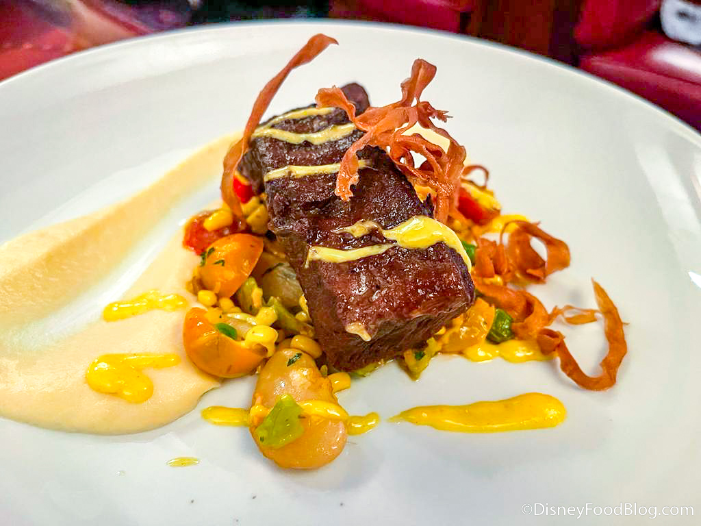 The Hollywood Brown Derby in Disney’s Hollywood Studios also received some big menu changes, and the Braised Short Rib was a HIT with us. It’s served with Parsnip Puree, Spring Vegetable Succotash, and Truffle Aioli for $39. It was our favorite of the new entrees at Brown Derby!