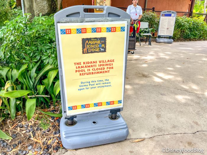 At Disney’s Animal Kingdom Lodge, the Samawati Springs Pool is closed. It will remain closed through April 2022. Guests at this hotel can head to the Uzima Springs Pool (also located at this hotel) instead.