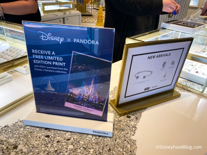 Pandora is also currently running a promotion: Guests who spend $150 or more on Disney x Pandora items will receive a free limited edition print.