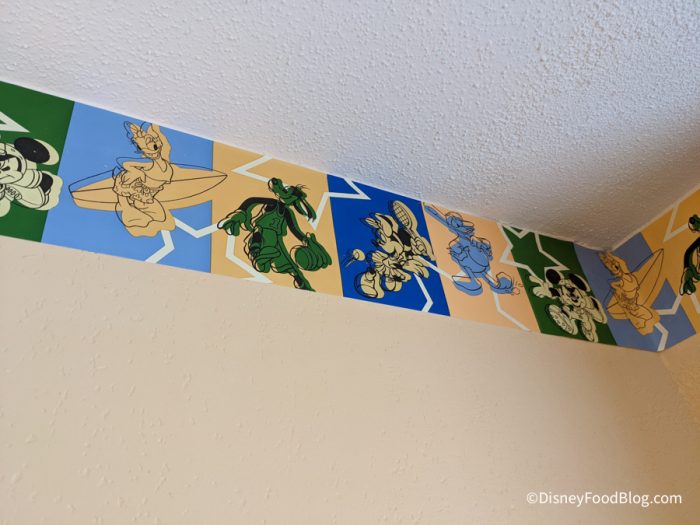 We recently took a look inside one of the standard rooms at All-Star Sports, so here’s a tour of the room! This room is located in the Surf’s Up! section of the hotel that is all about surfing! The standard rooms feature two double beds with a view of the courtyard, pool, or parking lot.