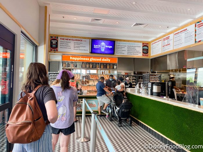 Over on the West Side of Disney Springs, at Everglazed Donuts & Cold Brew, “happiness is glazed daily,” or so they say. Here you can find specialty donuts and cold brew coffee, obviously, but you might be surprised to also find sandwiches, fries, and even flavored milk.