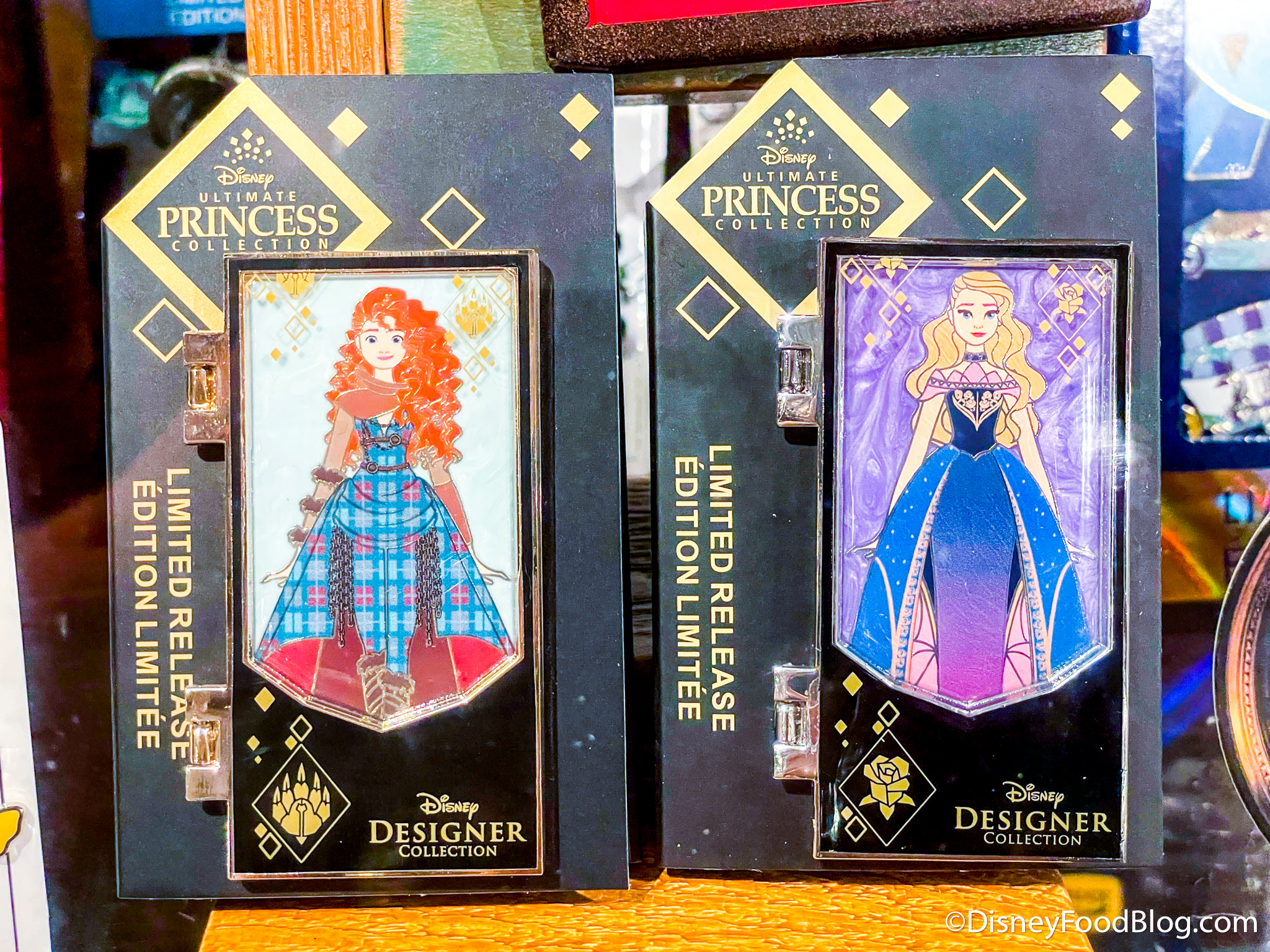 The Merida and Aurora Designer Princess Pins are over here, too. These are both $34.99 each.