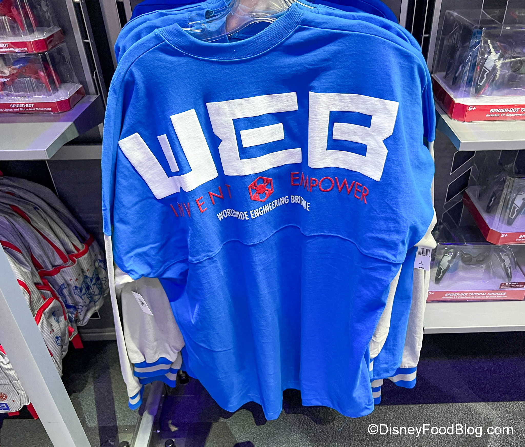 Disney is almost always releasing new spirit jerseys and the newest addition is the WEB Spirit Jersey. Inspired by the attraction, WEB Slingers: A Spider-Man Adventure, it features the WEB logo sprawled out on the back.