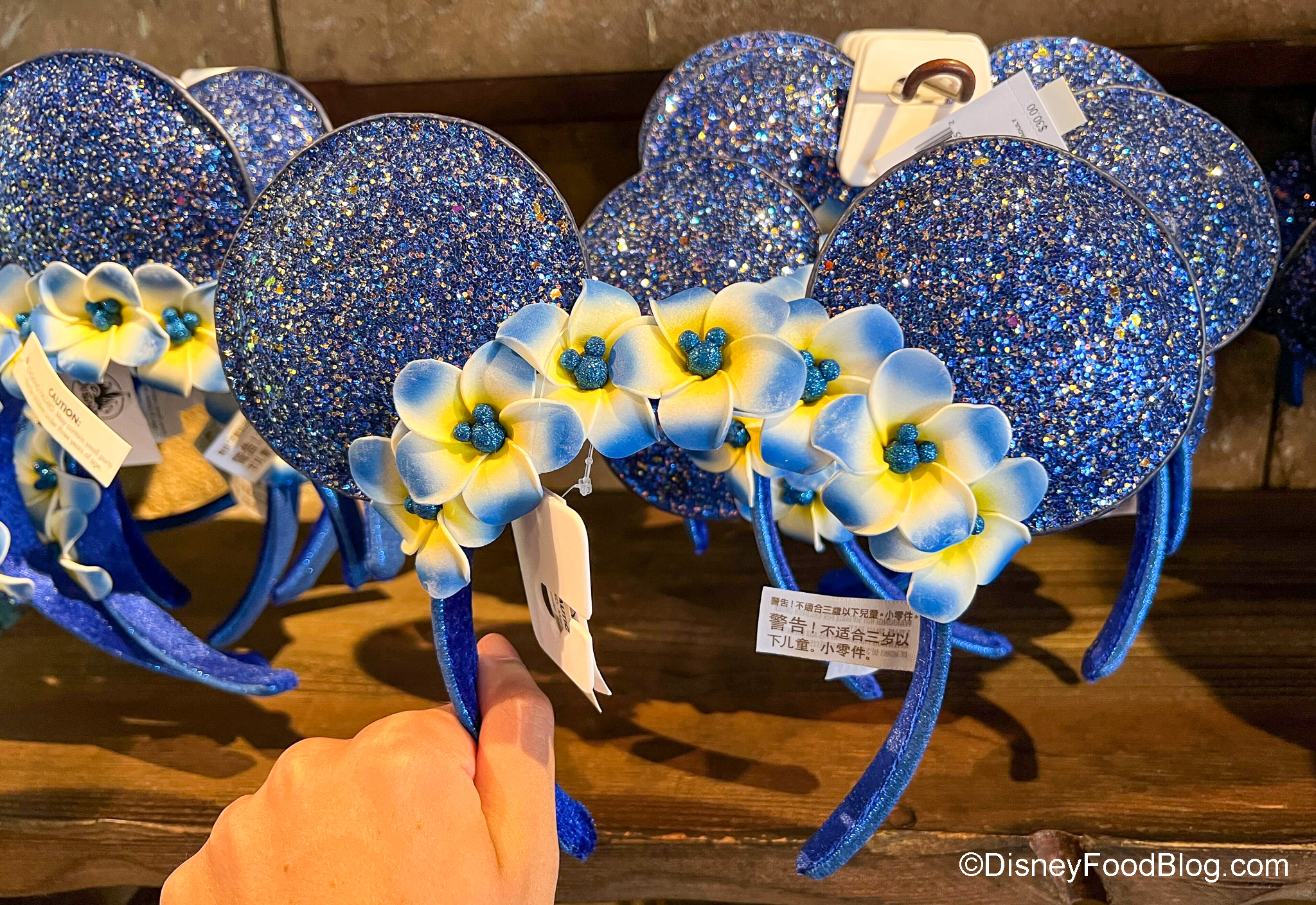 If you want a bit of sparkle with a side of island vibes, you can sport the Aulani Minnie Ears. They have flowers with a Mickey icon at the center and sparkly blue ears.