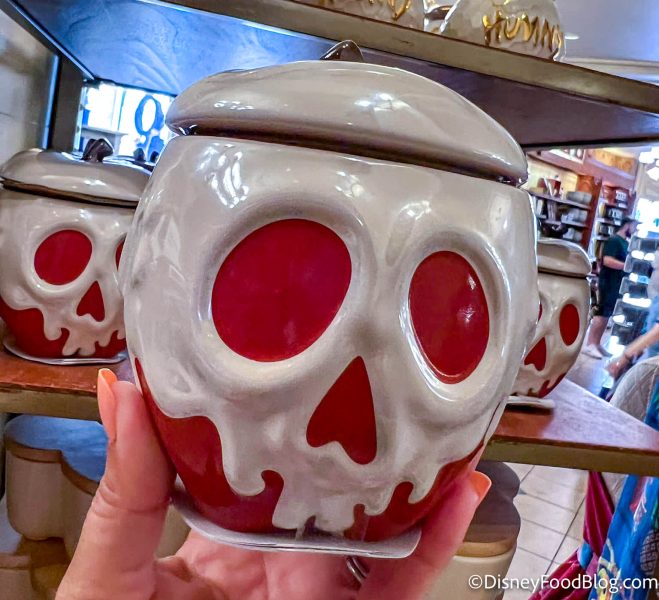 Finishing off with a spooky option — the Poisoned Apple Candle! This candle costs $34.99, and features pearlescent white and red stoneware!