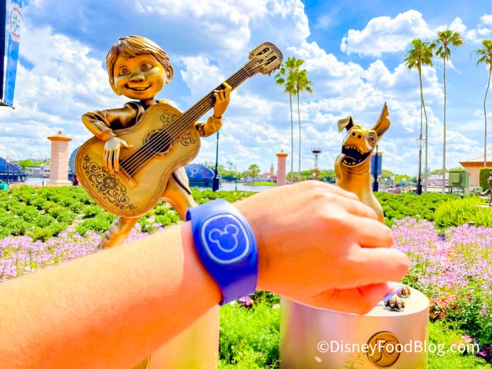 But, the MagicBand+ is MUCH more interactive — complete with “color-changing lights, haptic vibrations, and gesture recognition” that activate once guests enter a theme park. Have you spotted the golden 50th Anniversary Statues throughout Disney World? Guests wearing MagicBand+ devices are able to interact with them!