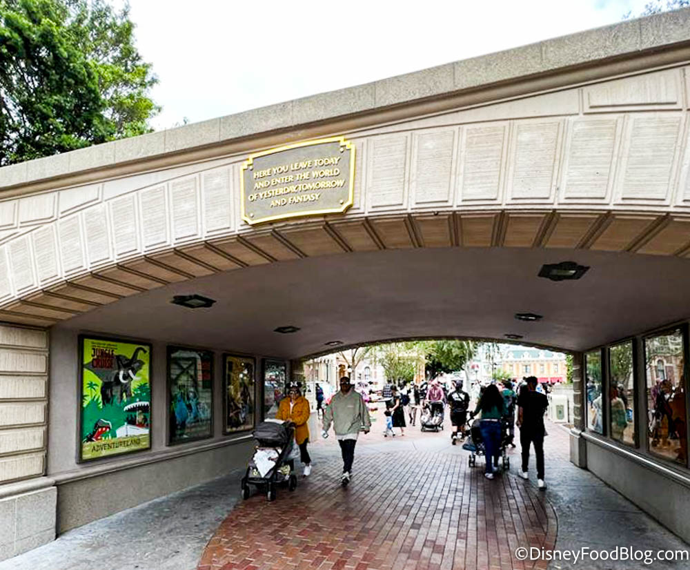 2022-DLR-atmosphere-disneyland resort-entrance-here you leave today and enter the world of yesterday tomorrow and fantasy By Sara McOmber Leave a Comment