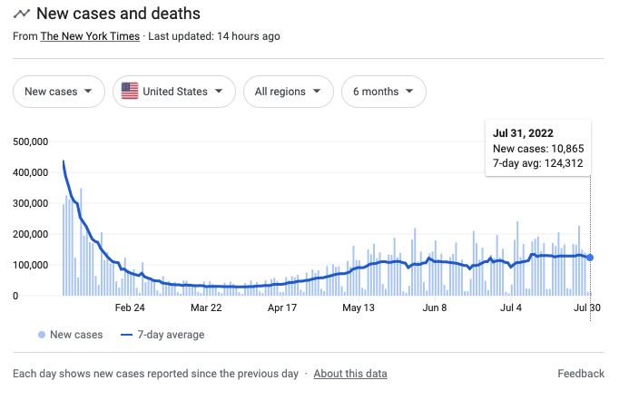 Some experts warned of a summer surge. In an interview with CBS News, Dr. Birx pointed to 2021, which had a similar trend of COIVD-19 cases to what we’re seeing so far in 2022. Dr. Birx urged the public to prepare for a coming increase in cases like we saw in the summer of 2021.