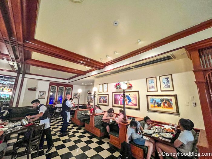 There are three dining areas inside Tony’s, including an outdoor patio, an indoor sunroom, and an indoor dining room. The sunroom has beautiful views of Main Street, U.S.A. and as a bonus, it’s air-conditioned!