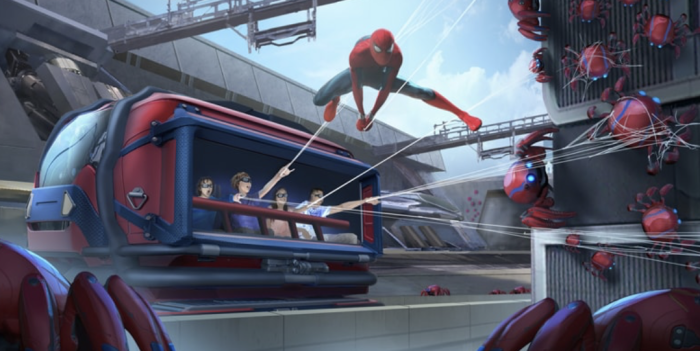 Then, on Spider-Man W.E.B. Adventure, people of all ages can team up with Spidey and help capture the out-of-control Spider-Bots, Peter Parker’s robot sidekicks, before they wreak havoc on the Campus. You will be able to sling webs right from your wrists, like the attraction in Disney California Adventure!