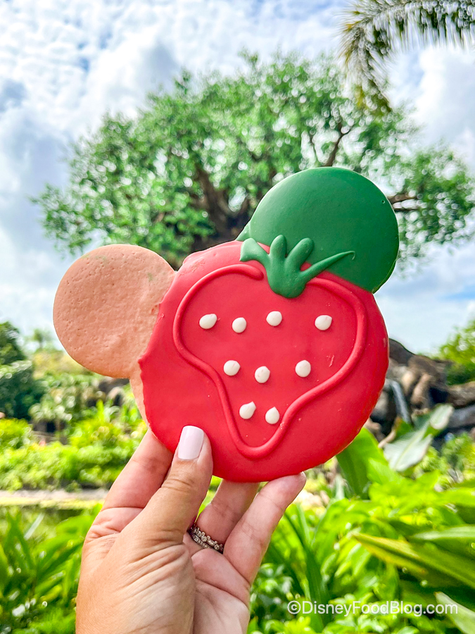 Zuri’s is serving up two fruity snacks — starting with the Strawberry Mickey Cookie. But you should be able to find these available in more locations as well.