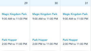 Magic Kingdom will be open from 9AM until 11PM on May 29th through 31st.