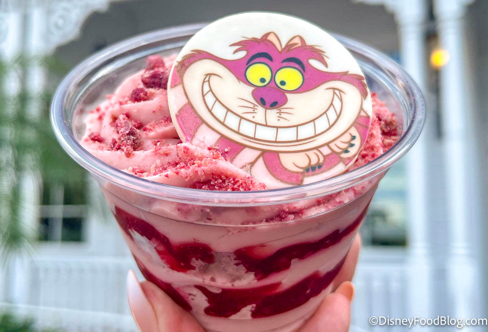 - Cheshire Cat Wild Berry Parfait — Layers of Wildberry Mousse, Raspberry Sauce, and Berry Crumble with a Cheshire Cat White Chocolate Disc for $6.49