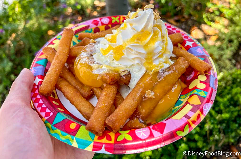Also available are the Peaches and Cream Funnel Cake Fries, which are dusted with cinnamon sugar and topped with whipped cream and peach glaze drizzle.