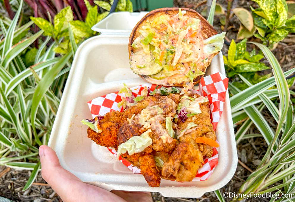 And finally, we tried the Big O’ Sandwich from Bred’s Nashville Hot Chicken food truck, which is available after 3PM from June 1st through July 4th for $15.95. This chicken sandwich comes with vinaigrette slaw, housemade pickles, and comeback sauce on a toasted brioche bun.